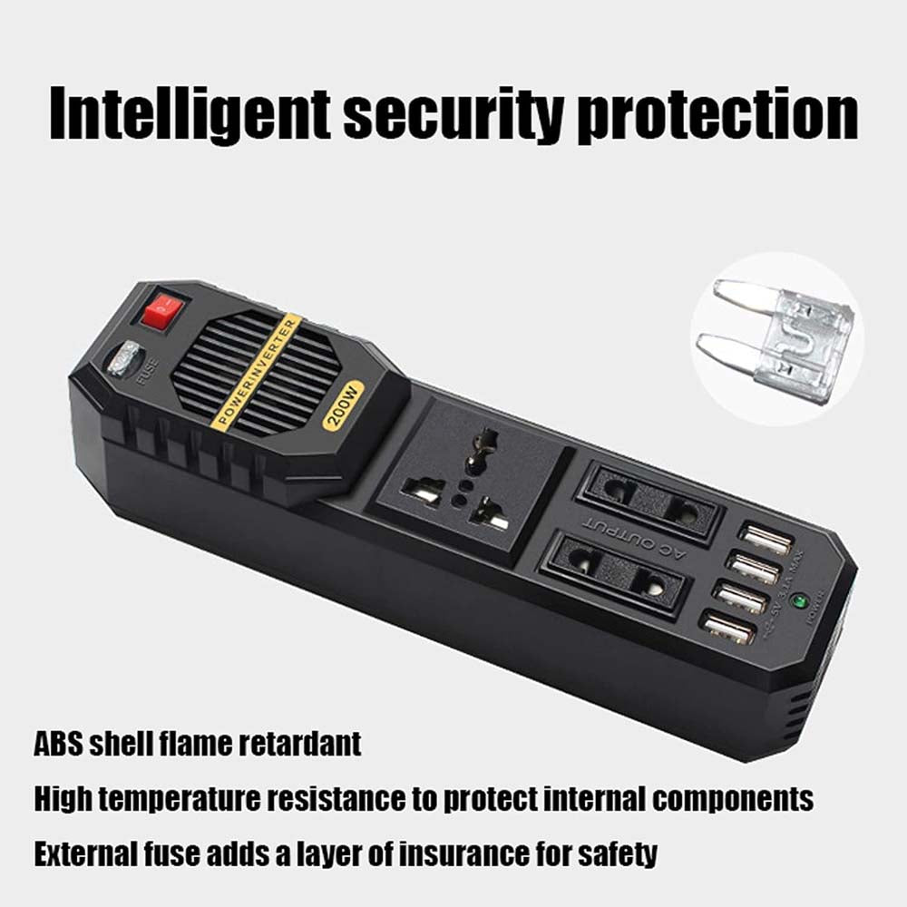 The 200W Car Power Inverter is a versatile and essential travel companion that transforms your vehicle’s 12V DC power into 220V AC electricity, allowing you to charge and power a wide range of devices on the go. Equipped with two AC outlets, this inverter supports laptops, small appliances, and other electronics requiring standard wall power, while the four USB ports (including fast-charging options) efficiently power smartphones, tablets, and other USB devices. The integrated cigarette lighter socket provides an additional charging option for car-specific accessories, making this inverter a comprehensive power solution for road trips, camping, commuting, and emergencies.Designed with safety and reliability in mind, this power inverter features overload protection, short-circuit protection, and over-temperature control to safeguard both your devices and your vehicle’s electrical system. The cooling fan ensures optimal temperature management during extended use, while the durable aluminum housing provides heat dissipation and long-lasting performance. Compact and lightweight, the inverter plugs directly into your car’s 12V outlet without complicated installation, and the LED power indicator keeps you informed of its operational status. Whether you’re working remotely from your car, powering entertainment on a family trip, or keeping devices charged during outages, this inverter delivers convenience and peace of mind.7 Bullet Points:200W Power Output - Converts 12V DC to 220V AC for various devices2 AC Outlets - For laptops, small appliances, and electronics4 USB Ports - Includes fast-charging options for mobile devicesCigarette Lighter Socket - Additional charging for car accessoriesComprehensive Safety Protections - Overload, short-circuit, and temperature controlCooling Fan & Aluminum Housing - Efficient heat dissipation and durabilityPlug-and-Play Design - Easy setup without installation required10 Product Keywords:Car power inverter200W power converterDC to AC inverterUSB car inverter12V to 220V converterCar charger adapterVehicle power inverterPortable car inverterMulti-port car chargerTravel power inverter