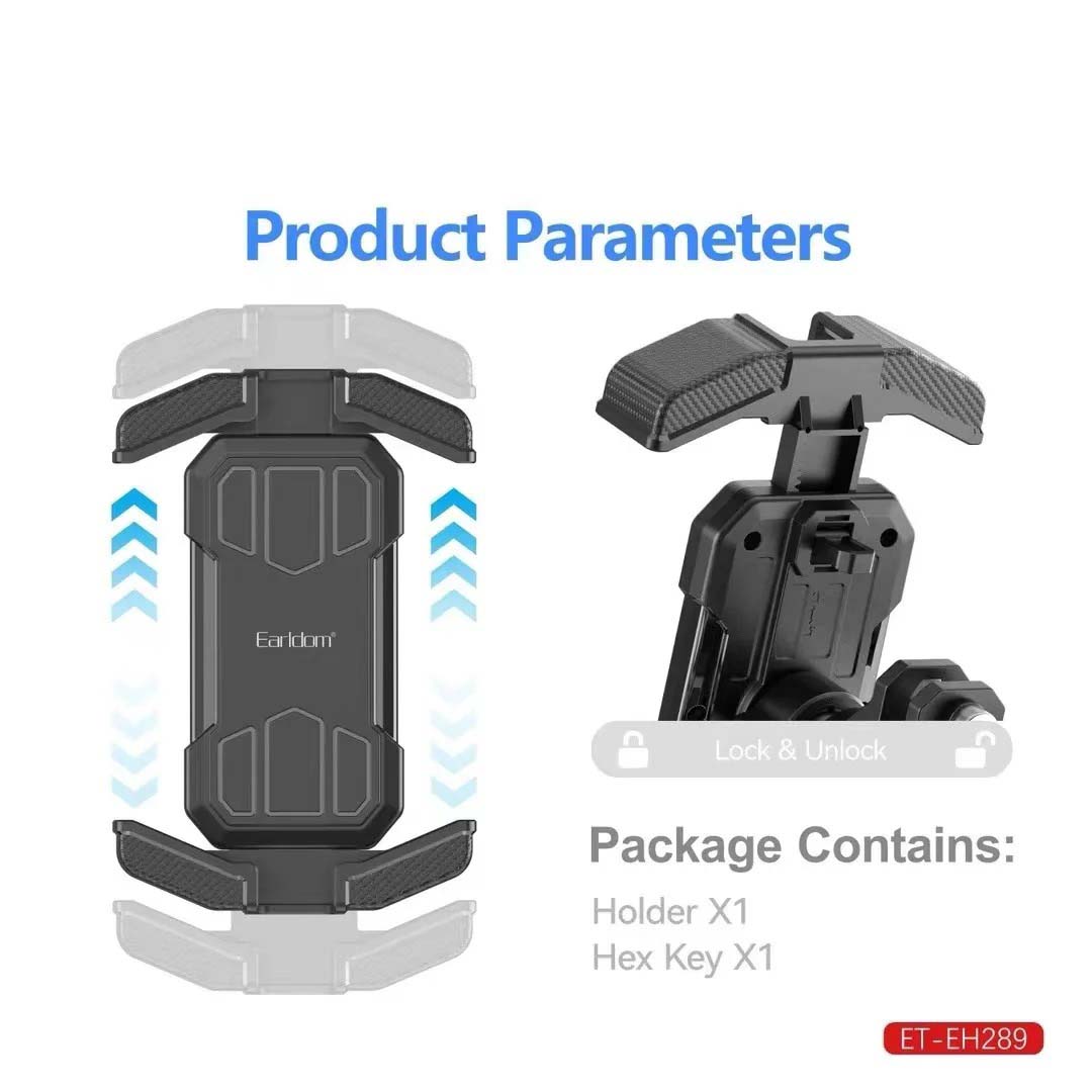 Enhance your cycling experience with the Universal Bike Mobile Stand (ET-EH289), a sturdy and versatile smartphone holder designed for bicycles, motorcycles, and bikes. This mobile stand combines functionality with ease of use, ensuring that your smartphone remains secure and accessible during every ride.The stand features a stability-enhancing clip that keeps your phone firmly in place, even on bumpy terrain. Its one-hand operation allows you to quickly mount and remove your smartphone without hassle, making it perfect for riders on the go. The multi-perspective adjustment design ensures optimal viewing angles for navigation, fitness apps, or music control, providing a seamless riding experience.Constructed with durable materials, the ET-EH289 Bike Mobile Stand is compatible with a wide range of smartphones, ensuring universal functionality. The adjustable design accommodates various handlebar sizes, making it suitable for bicycles, motorcycles, and other two-wheelers.This mobile stand is lightweight, compact, and easy to install, requiring no additional tools. Whether you're commuting, exploring trails, or enjoying a leisurely ride, the Universal Bike Mobile Stand ensures that your smartphone is always within reach.Key Features:Universal Compatibility: Fits most smartphones and handlebars on bicycles, motorcycles, and bikes.Stable Clip Design: Ensures your phone remains securely mounted, even on rough terrain.One-Hand Operation: Quickly mount or remove your smartphone for convenience during rides.Multi-Perspective Adjustment: Allows optimal viewing angles for navigation, fitness tracking, or music control.Durable Construction: Built with high-quality materials for long-lasting performance.Lightweight & Compact: Easy to carry and install, perfect for daily use or long trips.Tool-Free Installation: Simple setup process, no additional tools required.Keywords:bike mobile stand, universal smartphone holder for bikes, adjustable bike phone mount, ET-EH289 bike phone stand, mobile holder for bicycles, motorcycle phone stand, one-hand operation mobile holder, multi-angle bike phone holder, stable phone clip for bikes, bike mobile stand for navigation, lightweight bike mobile stand, durable bike phone holder, cycling mobile mount, universal mobile holder for two-wheelers, phone stand for outdoor rides.